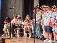 Sommerfeeling erhielt Einzug ins GymMar: Aloha! Die Schüler/-innen der Klasse 5 c begeisterten das Publikum mit Gesang und einem kleinen Tanz. Zu Anfang schwangen vier Mädchen die Hüften zu dem Song „Lush Life“, der derzeit im Trend liegt. Das war ein sehr gelungener Einstieg. Danach traten die übrigen Gruppenmitglieder, passend zum Hawaii-Thema kostümiert, auf. Während einige Ukulele spielten, sang der Rest „Count on Me“. Mit ihren thematisch passenden und kreativen Outfits sowie ihrem motivierten und mutigen Auftritt verzauberten sie das Publikum. Einige Zuschauer/-innen sangen sogar mit – herzlichen Dank!