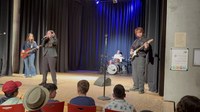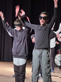 Rock ’n’ Roll! Die Theatergruppe aus Jahrgang 7 performte zu dem Lied „Time Warp“ einen Tanz im Vintage-Vibe. Sogar das Publikum saß nicht still und tanzte mit. Mit viel Swing und Freude tanzten die Kinder auf den Podesten; vor allem die MIB-Gruppe schaffte es, die Aufmerksamkeit auf sich zu ziehen und den Groove auf das Publikum zu übertragen.