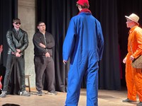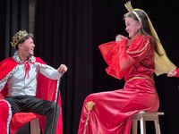 Die Schüler/-innen der S4 präsentierten das Stück „Der gestiefelte Kater“ aus der Serie „Simsala Grimm“. Sie führten es als Vollplaybacktheater auf und bauten im Hörspiel verschiedene Memes ein, die das Stück modernisierten. Die Darsteller/-innen überzeugten mit ihrer schauspielerischen Leistung und sorgten für eine humorvolle Stimmung. Vor allem der Einklang zwischen Mimik und Hörspiel war beeindruckend, z. B. von Yoyo, König, Prinzessin, Erzähler, Zauberer und Kröte. Des Weiteren waren die Kostüme passend gewählt und kreativ gestaltet, z. B. Doc Croq, den Rebhühnern, dem Fischer oder dem Kater. Zum ersten Mal wurden die Zuschauer/-innen beim K-Abend von einem tierischen Gast überrascht: Dackel Eddie war im Partnerlook mit seiner Besitzerin Hannah zu sehen, beide jeweils mit einem Friesennerz bekleidet. Dieser besondere Gastauftritt erfreute das Publikum sehr. Eine großartige Inszenierung aufgrund vieler Ideen und sehr guter Schauspielleistung!