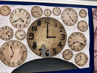 Alle ausgestellten Produkte aus der Bildenden Kunst behandelten das Thema „Zeit“. Besonders war, dass Zeit in jedem Werk anders dargestellt wurde. Von Klasse 8 bis Klasse 12 waren Kunstwerke in Form von Modellen, aber auch Bilder und Fotos im Foyer ausgestellt. Die Werke zeigten den Besucher/-innen, wie unterschiedlich Zeit wahrgenommen und interpretiert werden kann. Herausstechend war unter anderem das Bild, in dem ein Mensch fällt und sich in einen Roboter verwandelt, wodurch die Entwicklung von KI und Robotik in Relation zur Zeit gesetzt wird. Wie dieses Bild stellten auch andere Werke die Zeit in Zusammenhang mit wichtigen Themen, z. B. Klimawandel, Selbstfindung und Ungewissheit über die Zukunft.
