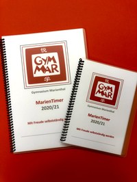 Ein ständiger Begleiter durch den Schultag für jede Schülerin/jeden Schüler ist unser MarienTimer. Der MarienTimer dient als Hausaufgaben- und Entschuldigungsheft und unterstützt das Zeit- und Organisationsmanagement der Schülerinnen und Schüler. Ebenso ist es ein Kommunikationsmittel zwischen Schülern, Eltern und Lehrern. Alle wichtigen Schultermine sind bereits vermerkt, genauso wie die wichtigsten Rufnummern, Adressen und Notfallnummern.